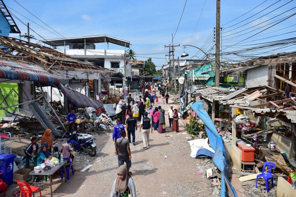 أثنار الدمار الذي لحق بموقع التجمع في باكستان