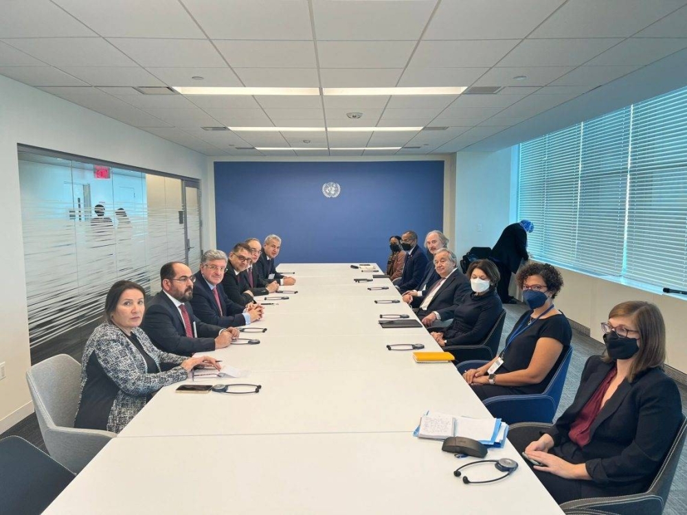 لقاء سابق يجمع هيئة التفاوض مع غوتيريش وبيدرسن.