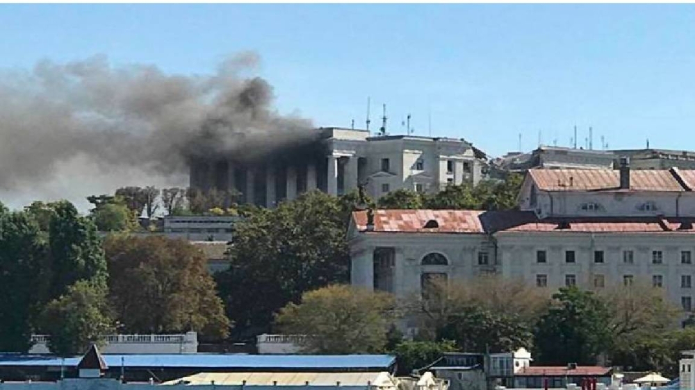 الدخان يتصاعد من مقر الأسطول الروسي في البحر الأسود.