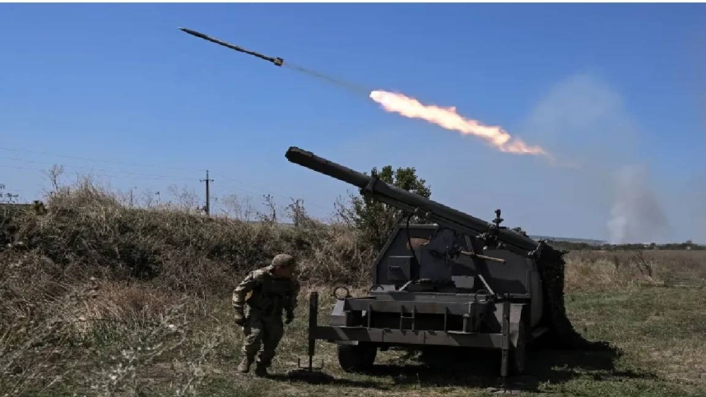 جنود أوكرانيون يطلقون صواريخ تجاه القوات الروسية في زاباروجيا.