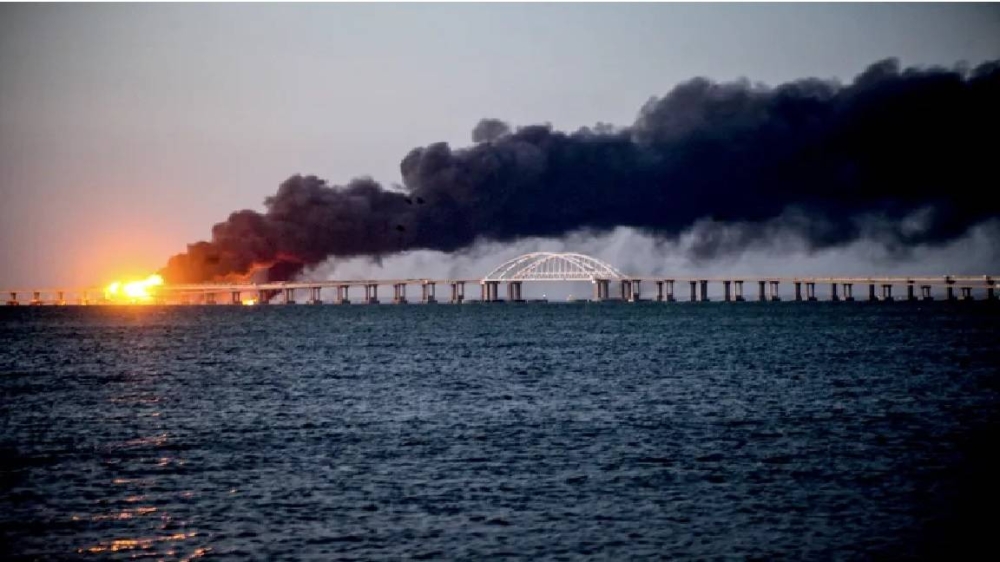 جسر القرم تعرض للعديد من الضربات الأوكرانية .