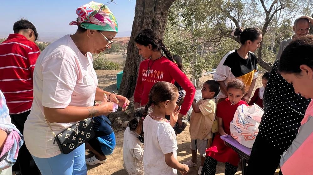 تعود الملياني للحديث موضحة، أنها وجدت ألفة كبيرة بين الفتيات في مناطق الزلزال، وأنها لا تكاد تغادر قرية إلا وتترك قطعة من قلبها مع أطفال فقدوا أمهاتهم وأشقاءهم وأهلهم ويباتون في خيام حتى إعادة إعمار منازلهم.