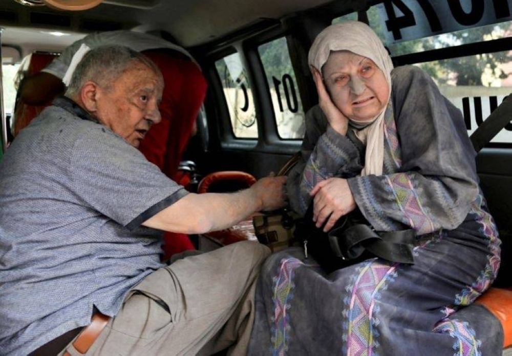 إجلاء مصابين جراء القصف الإسرائيلي على مبنى سكني في مدينة غزة.
