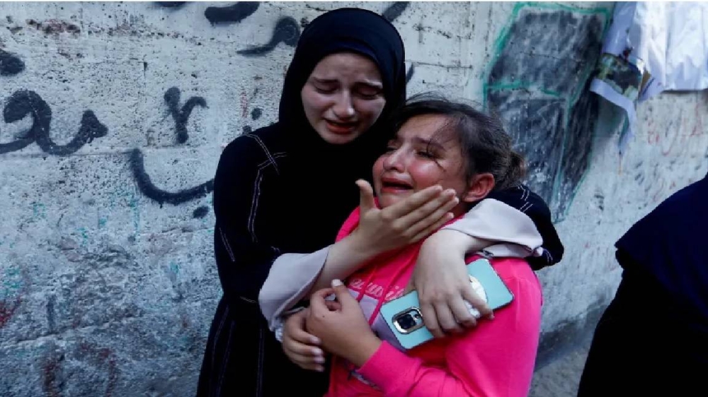 فلسطينيتان تنتحبان جراء الحرب على غزة.