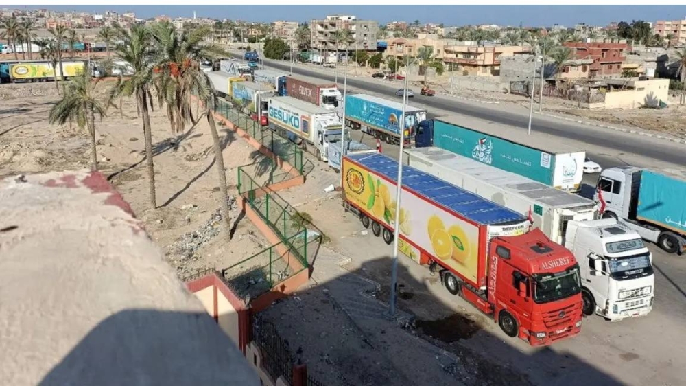 شاحنات المساعدات الإنسانية تنتظر في معبر رفح