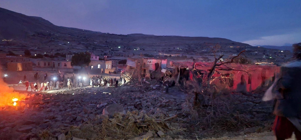 منازل مدمرة جراء انفجار مخزن أسلحة في عمران.