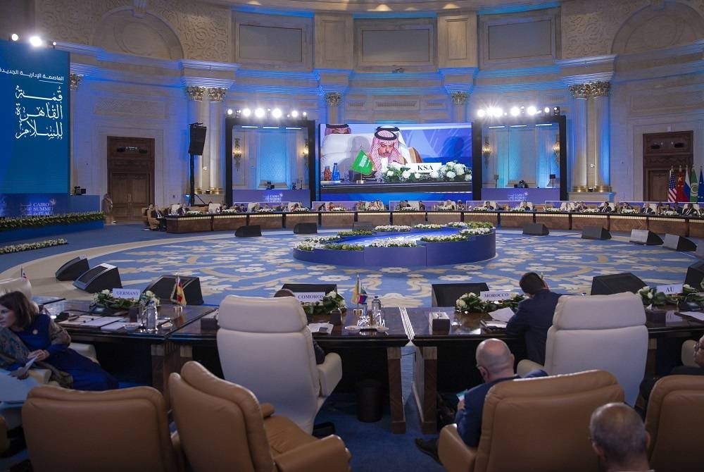 وأعرب وزير الخارجية السعودي عن شكره لجمهورية مصر العربية على الجهود المبذولة لتعزيز التنسيق والتشاور الإقليمي والدولي تجاه التطورات الخطيرة في قطاع غزة، كما نقل تحيات خادم الحرمين الشريفين الملك سلمان بن عبدالعزيز آل سعود، وولي العهد رئيس مجلس الوزراء الأمير محمد بن سلمان، وتمنياتهما بنجاح أعمال القمة.