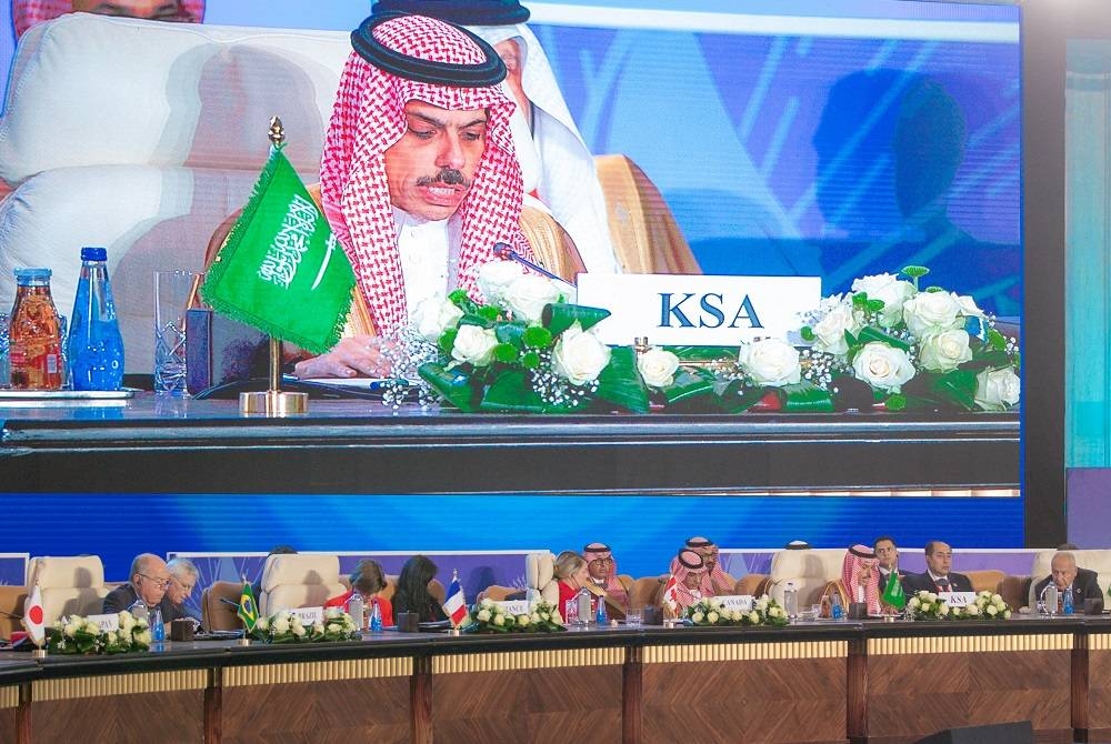 وشدد الأمير فيصل بن فرحان، على أن السعودية حرصت منذ اندلاع الأزمة على التشاور والتنسيق مع الأشقاء والشركاء في المجتمع الدولي، معرباً عن أمله أن تسهم هذه القمة في تحفيز تحرك حاسم للمجتمع الدولي لإيجاد حل ينهي هذه الأزمة، ويسمح بالخروج من نفق المعاناة، ويفسح المجال لحوار جاد حول مستقبل القضية الفلسطينية، وبحث سبل دعم المجتمع الدولي لسلام عادل ودائم في المنطقة، يحقق الأمن والازدهار للجميع، مؤكدا استمرار السعودية في مساعيها مع كافة الشركاء للوصول إلى هذه الغاية، لكن الأولوية القصوى بالنسبة لنا هي الوقف الفوري للتصعيد العسكري لحقن الدماء وإغاثة المتضررين، بما يهيئ الظروف الملائمة للعمل نحو السلام.
