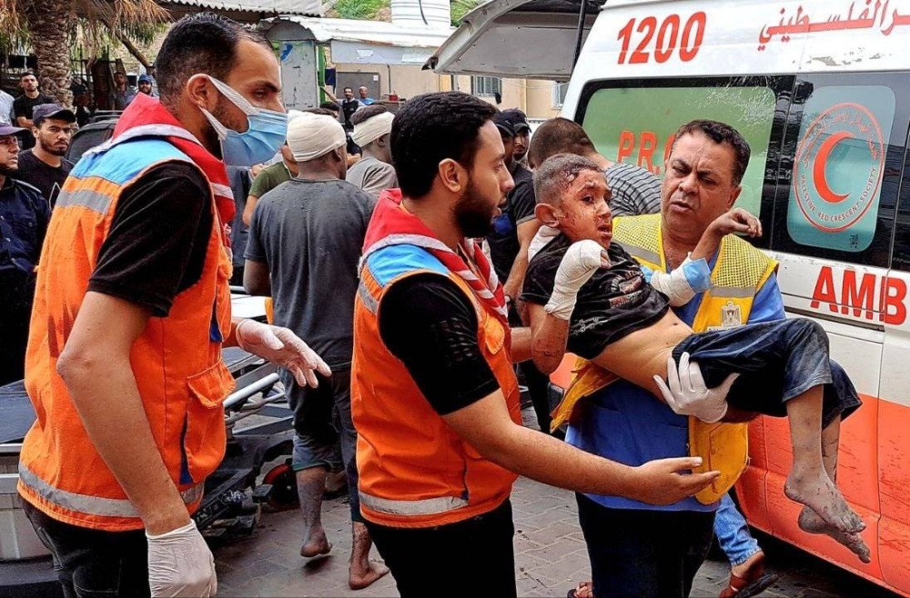 أطفال جرحى يُنقلون إلى مستشفى القدس.