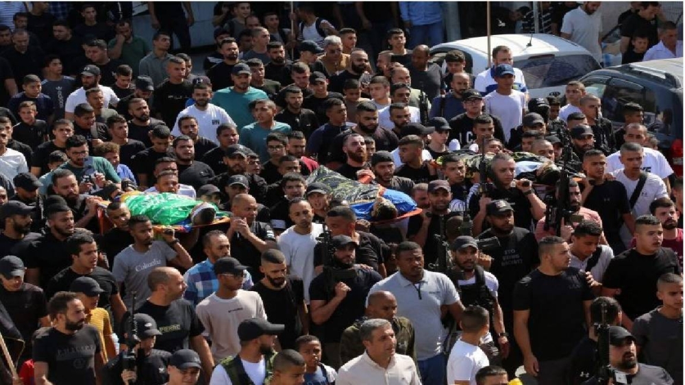 فلسطينيون يشيعون قتلى سقطوا في العدوان الإسرائيلي على جنين.