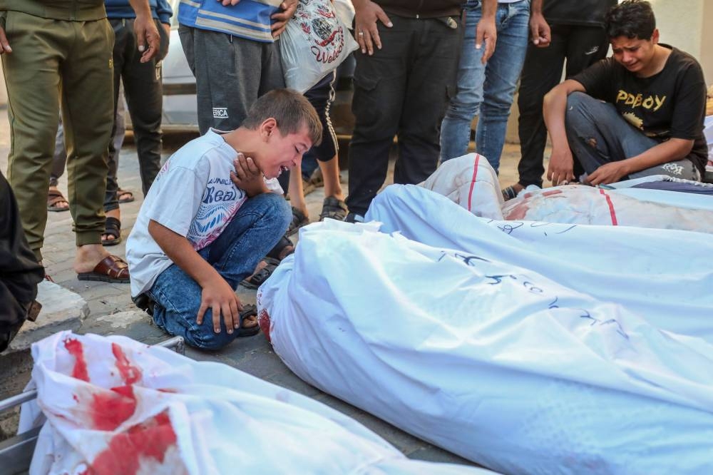 أطفال يودعون أسرهم التي قتلت في قصف اسرائيلي على احياء غزة