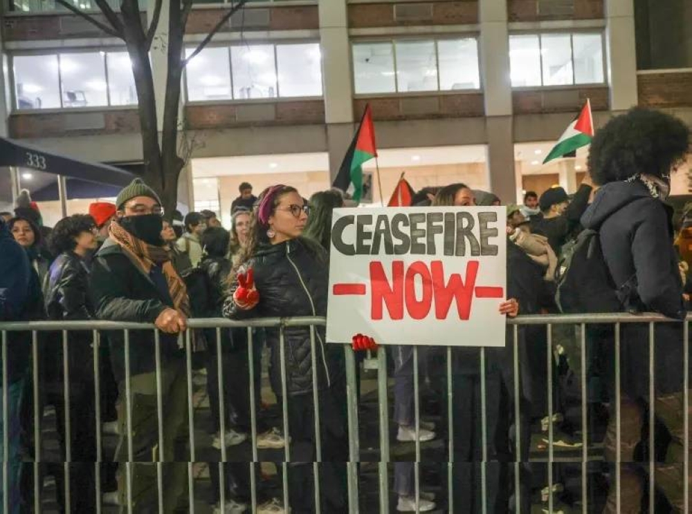 مظاهرات أمام بعثة أمريكا لدى الأمم المتحدة في نيويورك تندد بالحرب في غزة.