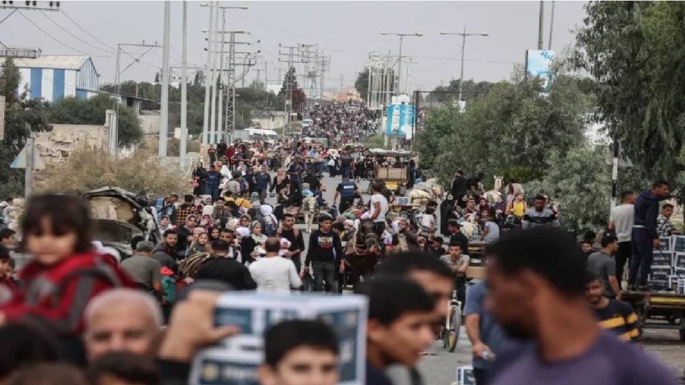 فلسطينيون نازحون من الشمال إلى الجنوب في وادي غزة.