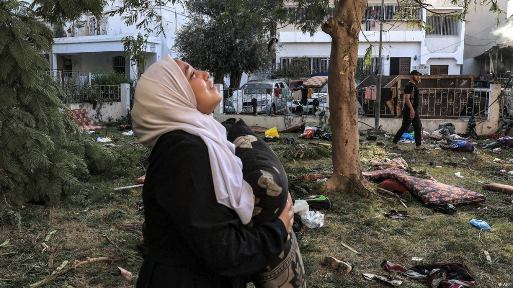 فلسطينية تبكي ضحايا العدوان الإسرائيلي على غزة .
