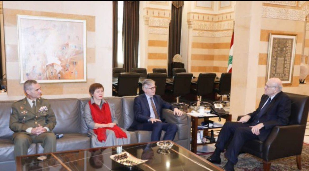 جدد رئيس حكومة تصريف الأعمال اللبناني نجيب ميقاتي اليوم (الثلاثاء)، استعداد بلاده للدخول في مفاوضات لتحقيق عملية استقرار طويلة الأمد في جنوب لبنان وعند الحدود الشمالية لفلسطين المحتلة، والالتزام بالقرارات الدولية وباتفاق الهدنة والقرار1701. جاء ذلك خلال لقاء جمعه بوكيل الأمين العام للأمم المتحدة لعمليات السلام جان بيار لاكروا والمنسقة الخاصة للأمم المتحدة في لبنان يوانا فرونتسكا، وقائد القوات الدولية العاملة في الجنوب «اليونيفيل» الجنرال ارولدو لازارو، والمستشار السياسي هيرفيه لو كوك.