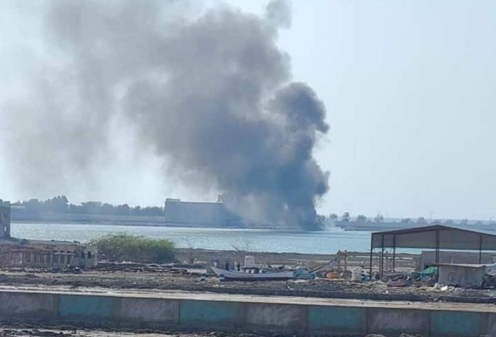 مواقع حوثية في منطقة الكثيب يتصاعد منها الدخان