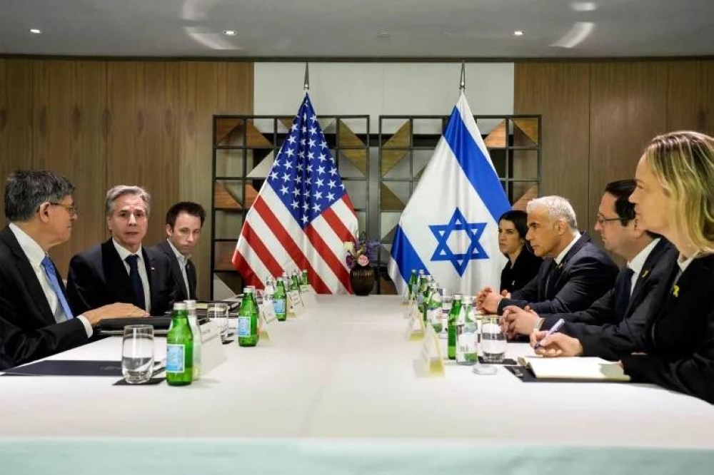 وناقش بلينكن في اجتماع مع زعيم المعارضة الإسرائيلية يائير لبيد ملف الرهائن الذي طالب لبيد بضرورة الالتزام تجاه الرهائن، وحل الوضع وإيجاد سبل لتعزيز السلام والازدهار وإذا أمكن الهدوء.