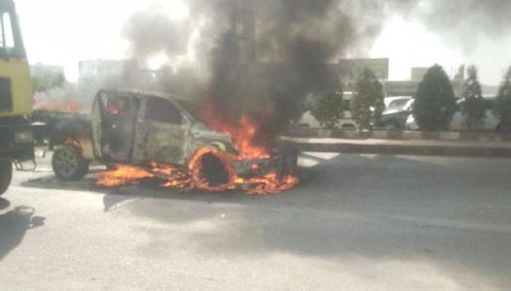 سيارة نجل المسؤول الأمني بعد تفجيرها.