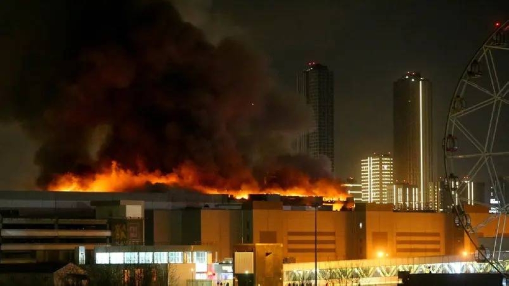 اندلاع حريق جراء هجوم لتنظيم داعش على أحد المواقع في موسكو