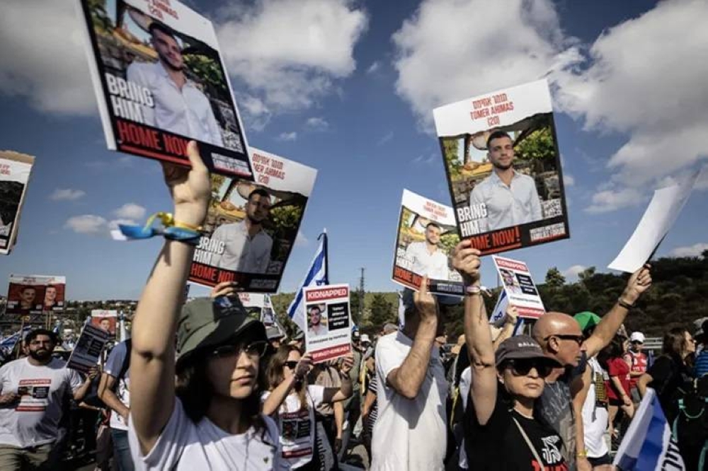 آلاف أهالي الأسرى الإسرائيليين في مسيرة سابقة نحو مكتب نتنياهو