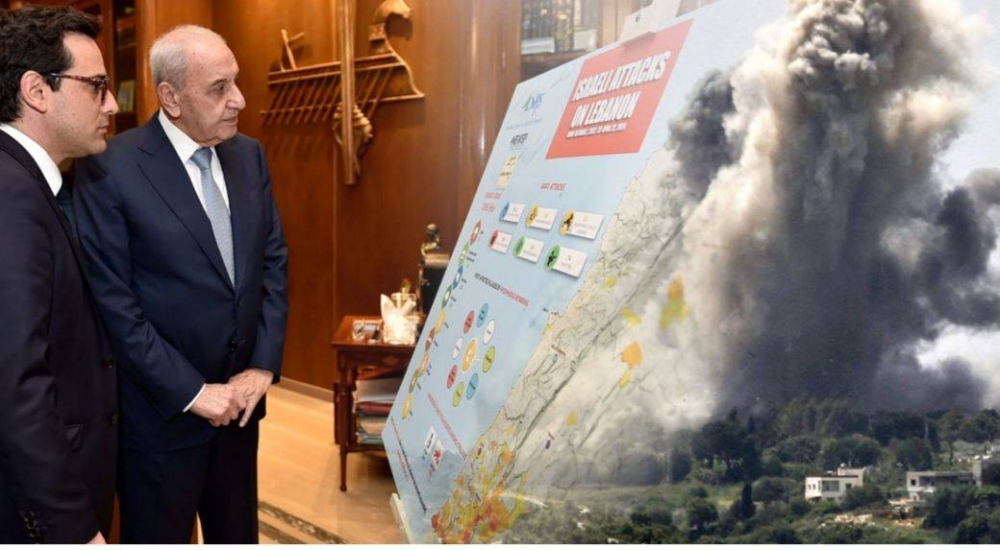بري يعرض أمام الوزير الفرنسي وقائع الاعتداءات الإسرائيلية على لبنان .