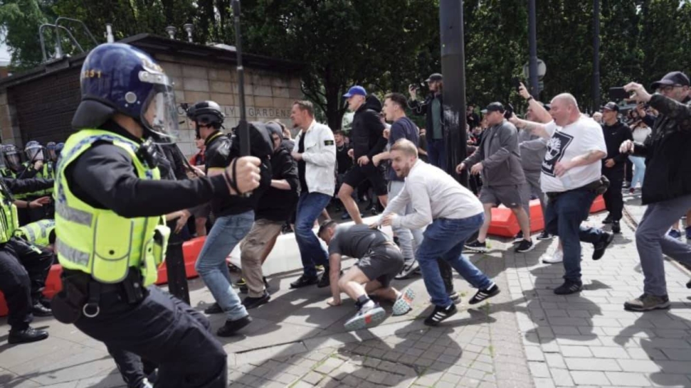 وحمّلت الشرطة مسؤولية الفوضى منظمات مرتبطة بـ«رابطة الدفاع البريطانية» التي تأسست قبل 15 عاما وجرى حلها.