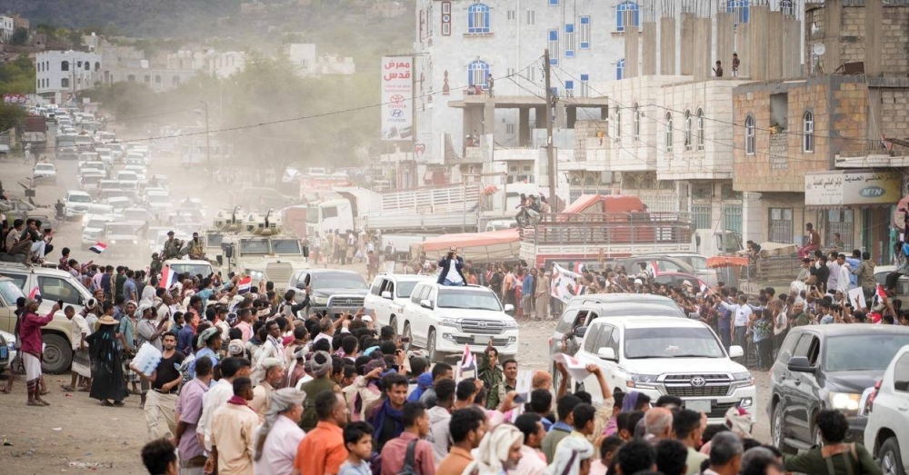 وأكد مصدر مسؤول يمني لـ«عكاظ» أن أبناء محافظة تعز بما فيهم طلاب المدارس والعمال رجالاً ونساء خرجوا إلى منطقة التربة للتعبير عن الفرحة الكبيرة بوصول أكبر مسؤول في البلاد ينزل عليهم ضيفاً لأول مرة، ويرون أنها بداية عهد جديد للتنمية ودعم مؤسسات الدولية في تحقيق الاستقرار والبناء، مبيناََ أن الجميع ردد شعارات الترحيب بـ«تحيا الجمهورية اليمنية»، «بالروح بالدم نفديك يا يمن» كما رحبوا بقلوبهم ودموعهم بابن محافظتهم ورئيس الدولة الذي انتظروه كثيراً.