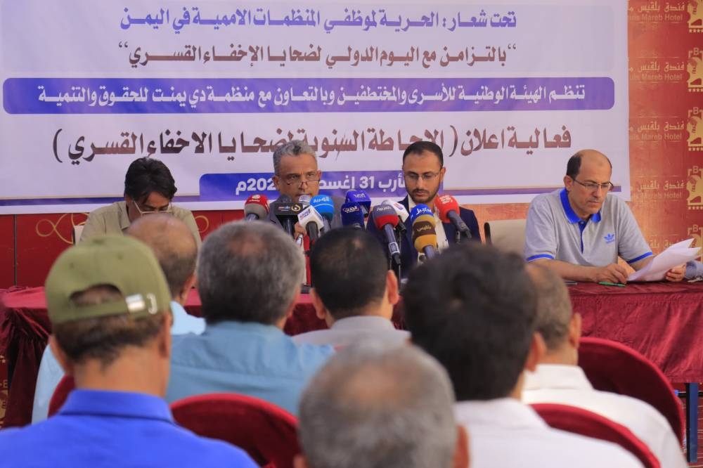 وقالت الهيئة الوطنية للأسرى والمختطفين بالتعاون مع منظمة يمنت للحقوق خلال الإحاطة السنوية بشأن ضحايا الإخفاء القسري في اليمن في مؤتمر صحفي في مأرب اليوم، وذلك بالتزامن مع اليوم الدولي لضحايا الإخفاء القسري، الذي يصادف ٣٠ أغسطس، إن مليشيا الحوثي اعتمدت منهجية واضحة وممنهجة في ممارسة الإخفاء القسري كوسيلة لإسكات الأصوات المعارضة وترهيب المجتمع، موضحة أن على رأس المخفيين قسراً القيادي السياسي محمد قحطان المخفي منذ 10 سنوات.