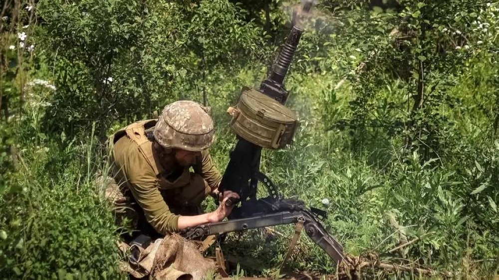 جندي أوكراني يطلق النار في موقع على خط المواجهة