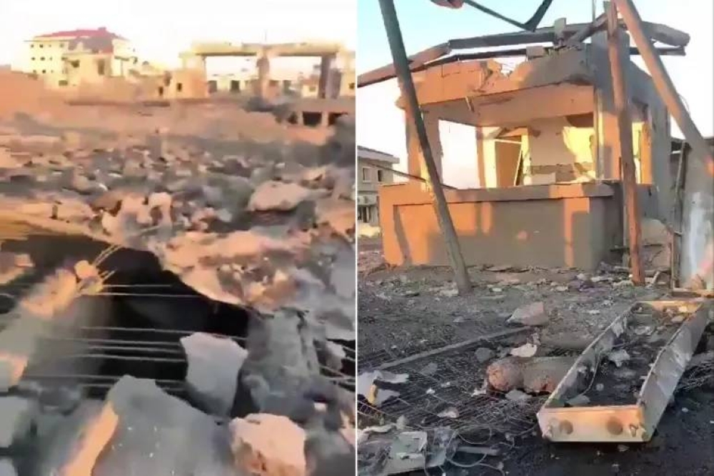 آثار الدمار في معبر العريضة الحدودي بين سورية ولبنان بعد تعرضه لهجوم إسرائيلي .