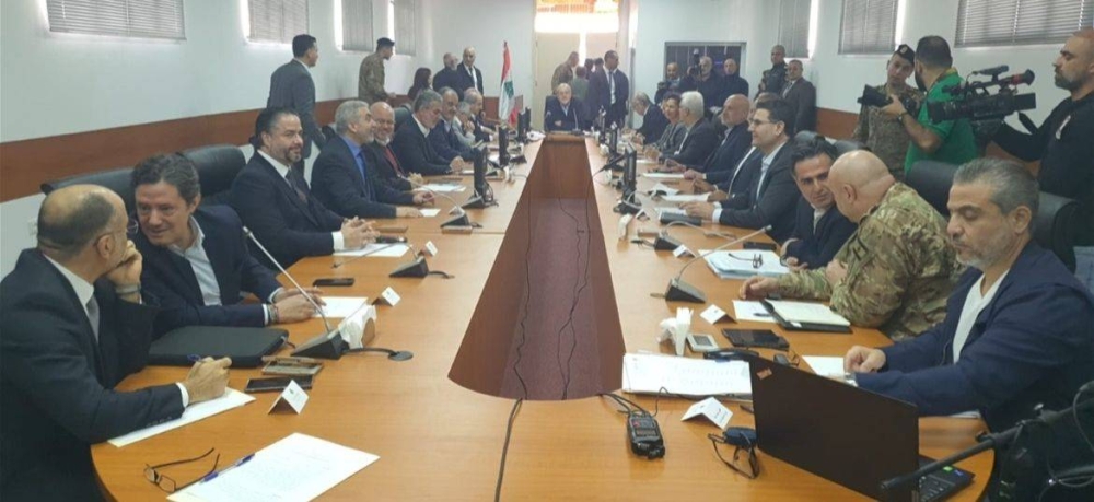 مجلس الوزراء اللبناني خلال اجتماعه في «ثكنة بنوا بركات» في مدينة صور.