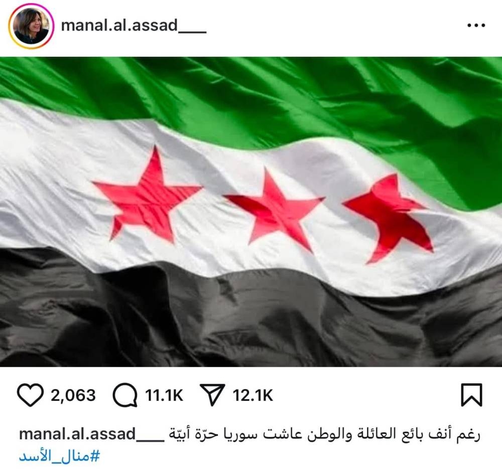 أثارت تدوينة على حساب في «إنستغرام» يحمل اسم منال الأسد، زوجة ماهر الأسد شقيق بشار، جدلًا واسعًا على مواقع التواصل الاجتماعي، بعد نشرها صورة لعلم الثورة السورية مرفقة بعبارة: «رغم أنف بائع العائلة والوطن، عاشت سورية حرّة أبيّة».