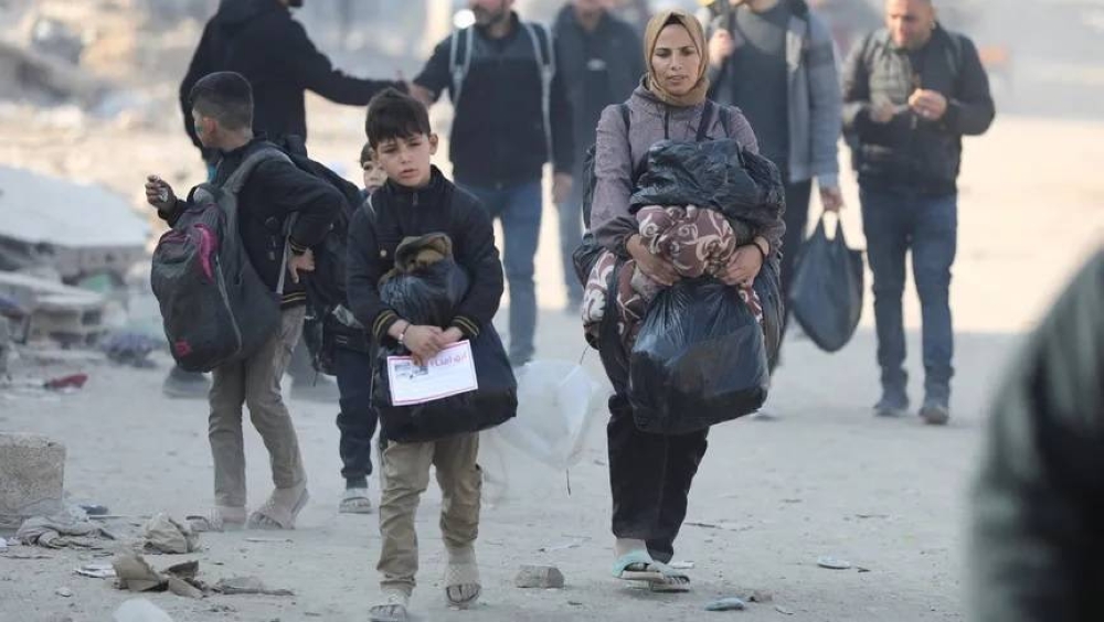 نازحون فلسطينيون خلال عودتهم إلى شمال غزة .