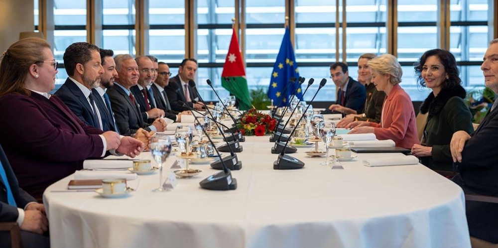 وقال بيان صادر عن الديوان الملكي الأردني إن الملك عبدالله شدد خلال لقاءات منفصلة عقدها في بروكسل اليوم مع رئيسة المفوضية الأوروبية أورسولا فون دير لاين، ورئيسة البرلمان الأوروبي روبرتا ميتسولا، ورئيس المجلس الأوروبي أنطونيو كوستا، على موقف الأردن الراسخ بضرورة تثبيت الفلسطينيين على أرضهم ونيل حقوقهم المشروعة، وفقاً لحل الدولتين، مشيراً إلى أن العاهل الأردني شدد على ضرورة تثبيت وقف إطلاق النار في قطاع غزة واستدامته، بما يسهم في تعزيز الأمن والاستقرار في المنطقة.