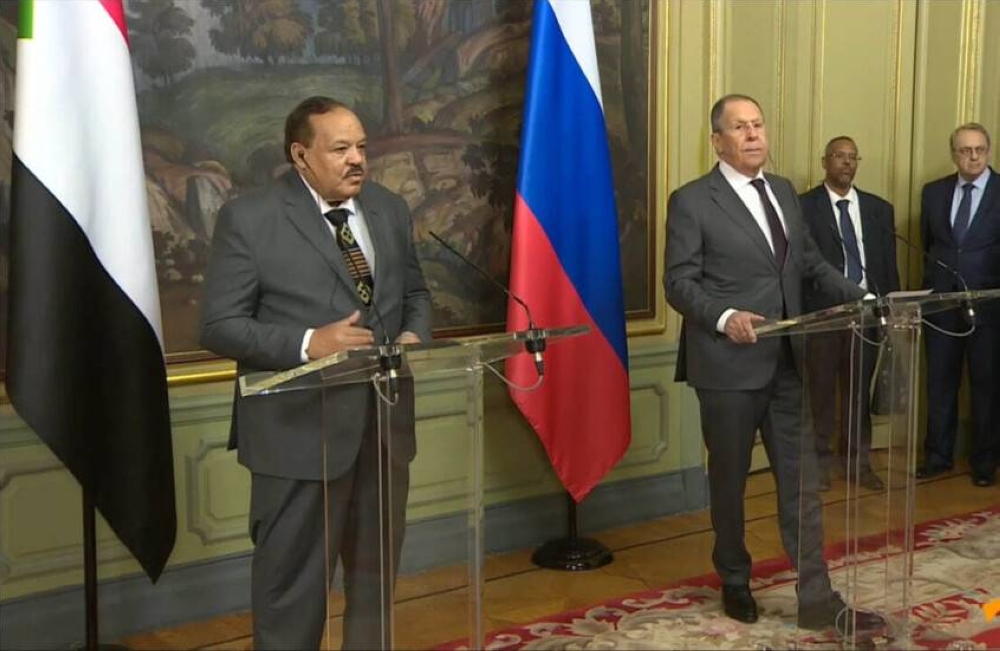 وزيرا الخارجية الروسي والسوداني خلال مؤتمر صحفي.