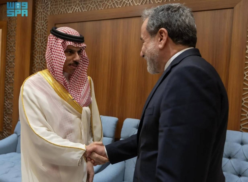 التقى وزير الخارجية الأمير فيصل بن فرحان بن عبدالله، أمس (الجمعة)، وزير خارجية إيران عباس عراقجي، على هامش الاجتماع الوزاري الاستثنائي لمجلس وزراء خارجية دول منظمة التعاون الإسلامي، المنعقد في جدة.