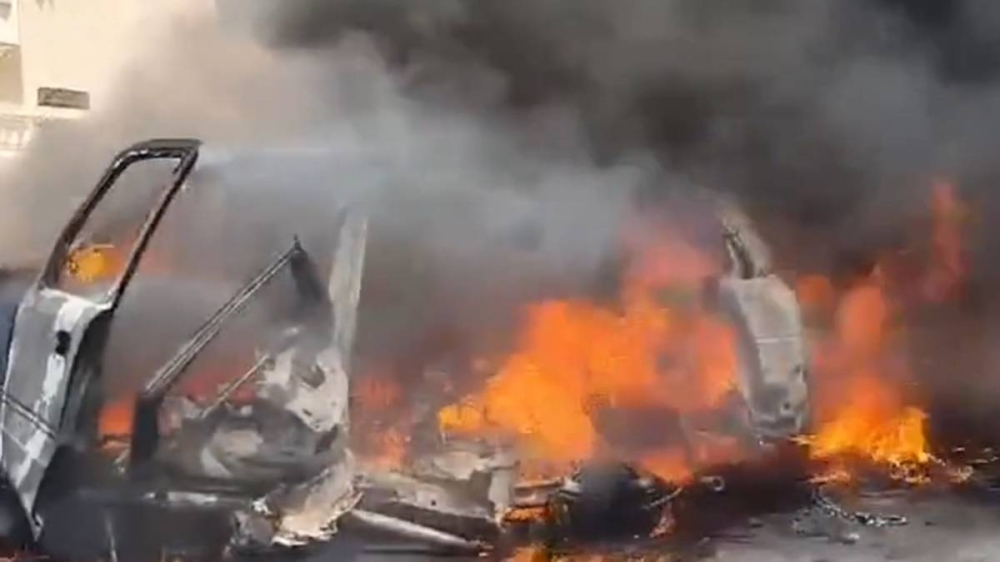 سيارة تحترق إثر قصف إسرائيلي على لبنان.