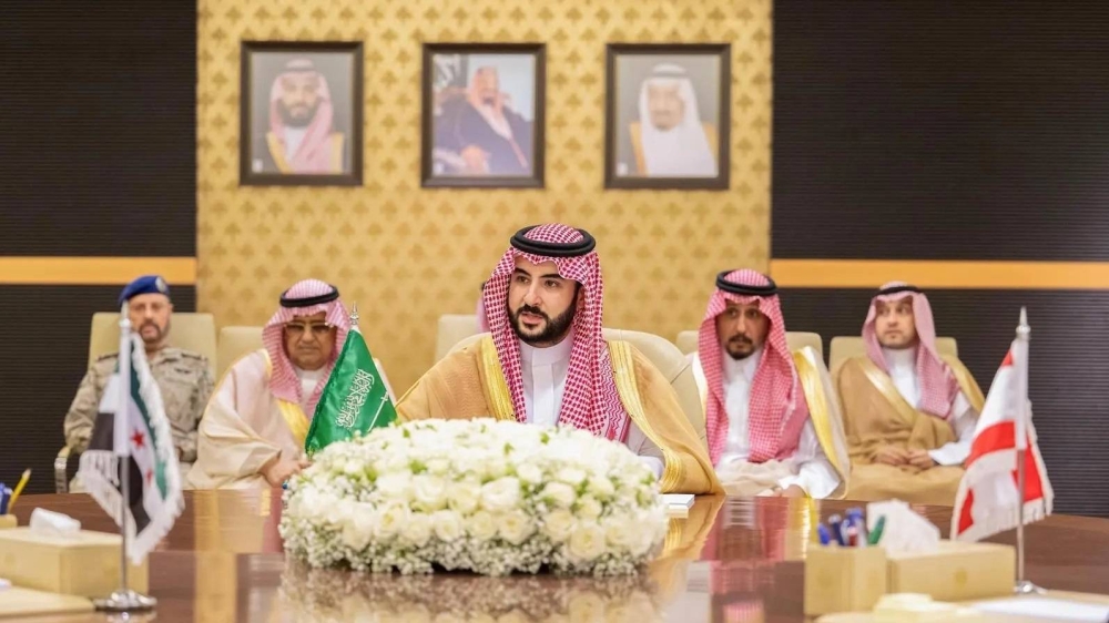وزير الدفاع الأمير خالد بن سلمان خلال رعايته لاتفاق سورية ولبنان
