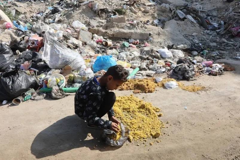 طفل فلسطيني يحصل على طعامه من النفايات.