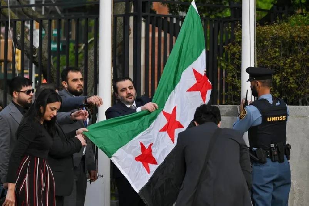 وزير الخراجية السوري يرفع علم بلاده في مقر الأمم المتحدة