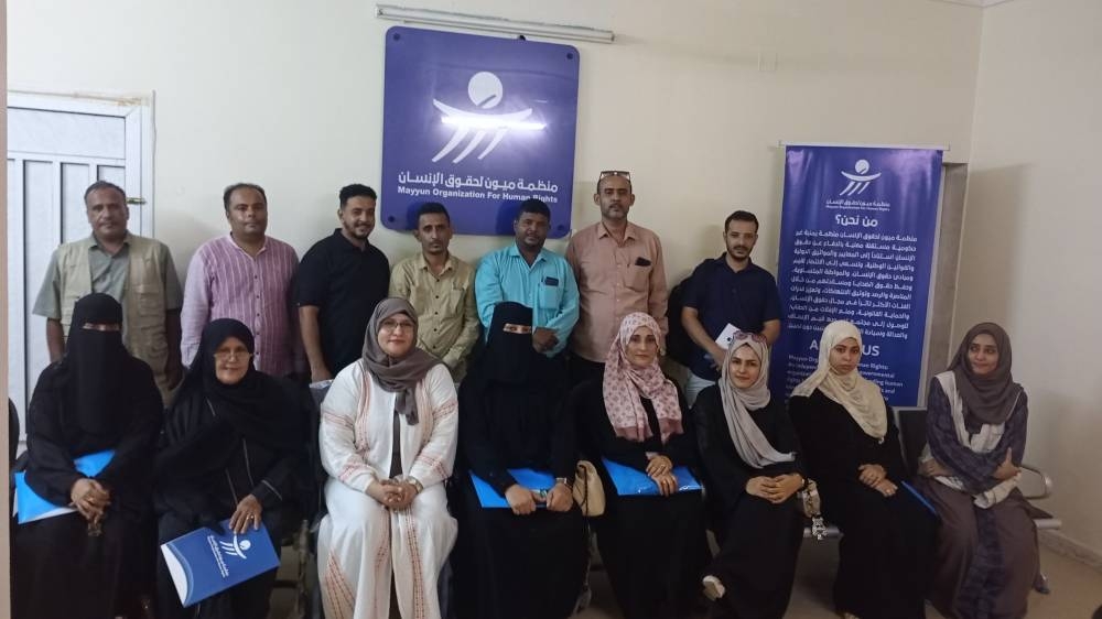 In order to enhance the capacity for participation in community committees, the Meoun Organization for Human Rights in Yemen organized a training workshop today (Tuesday) targeting 15 members of community protection committees in the city of Aden. In the workshop titled "Access to Humanitarian Assistance under International Humanitarian Law and Human Rights," participants discussed the mechanisms for protecting civilians and providing assistance to them.