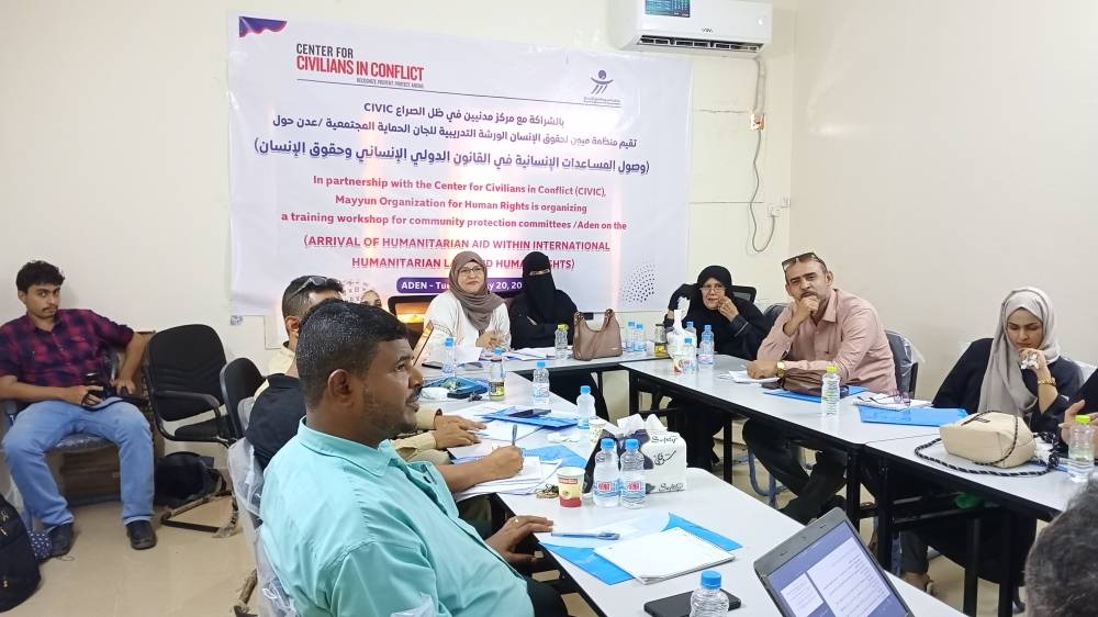 بهدف تعزيز قدرة المشاركة في اللجان المجتمعية، نظّمت منظمة ميون لحقوق الإنسان اليمنية اليوم (الثلاثاء)، ورشة تدريبية استهدفت 15 عضواً من لجان الحماية المجتمعية في مدينة عدن، وفي الورشة التي حملت عنوان «وصول المساعدات الإنسانية في إطار القانون الدولي الإنساني وحقوق الإنسان» ناقش المشاركون آلية حماية المدنيين وتقديم المساعدات لهم.