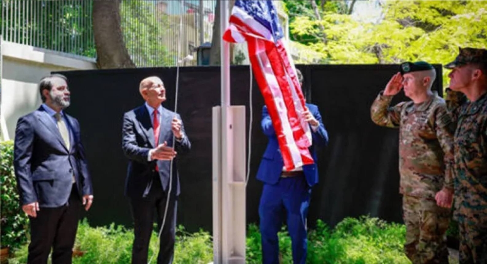 بعد أن وصل إلى دمشق في أول زيارة له، افتتح وزير الخارجية السوري أسعد الشيباني والمبعوث الأمريكي إلى سورية توماس باراك اليوم (الخميس) دار سكن السفير الأمريكي بدمشق ورفع العلم.