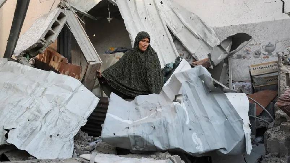 فلسطينية تقف على أنقاض منزلها الذي دمرته إسرائيل في جباليا شمال غزة.