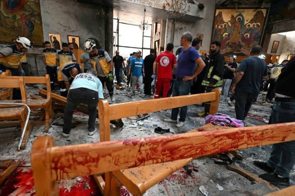 The attack occurred during an evening mass, where a suicide bomber wearing an explosive belt stormed the church and began firing randomly before detonating himself, causing significant destruction inside the building and in the surrounding structures. The Syrian Ministry of Interior announced that the attack was carried out by an individual affiliated with the terrorist organization "ISIS," noting that initial investigations confirm the organization's involvement in targeting civilians with the aim of destabilizing the situation and inciting sectarian strife.