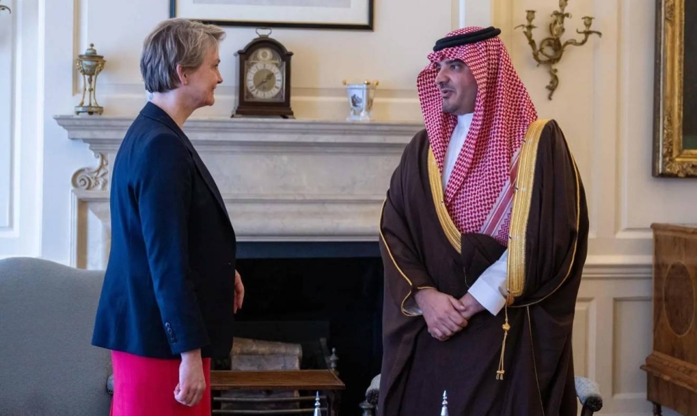 The Minister of Interior, Prince Abdulaziz bin Saud bin Naif bin Abdulaziz, met today with the British Home Secretary, Yvette Cooper, in the British capital, London.