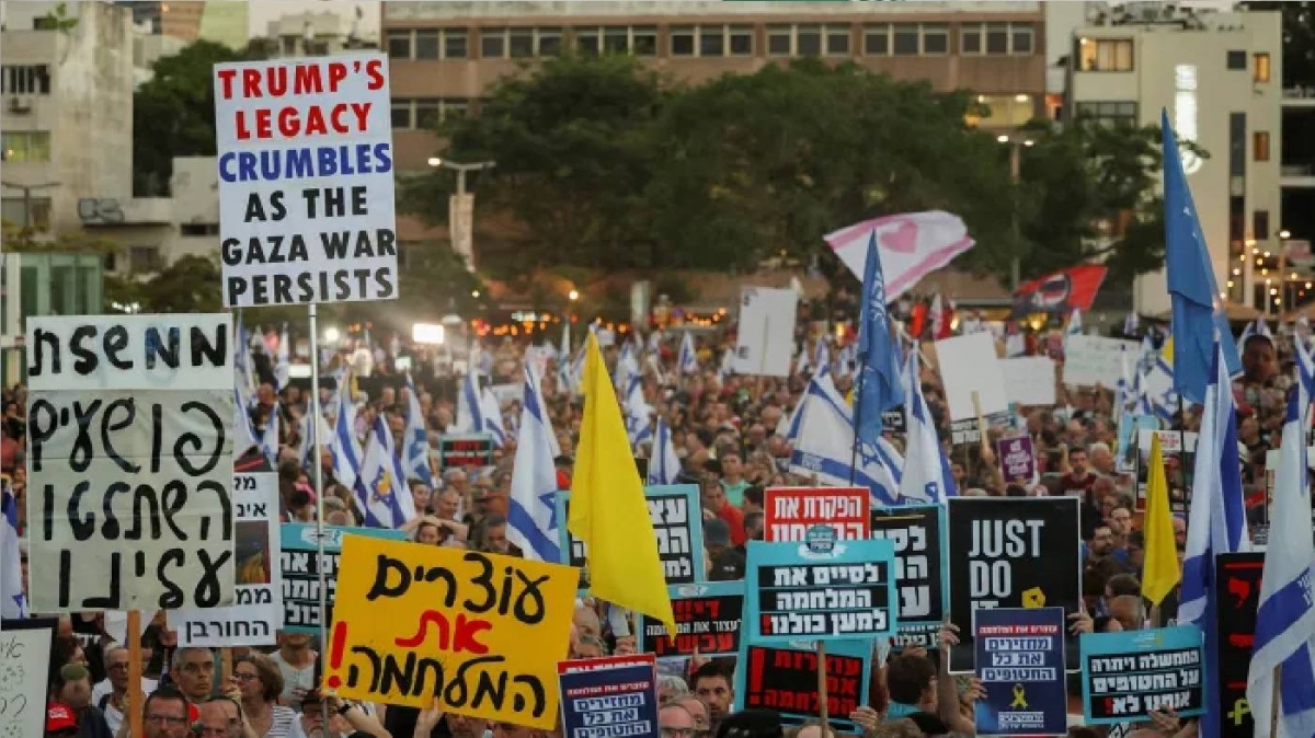 The Israeli Families of Prisoners Association reported that about 60,000 people are currently protesting in central Tel Aviv, urging the Israeli occupation government to finalize a deal that ensures the return of prisoners in Gaza, amid rising public pressure on the political leadership to end the crisis.