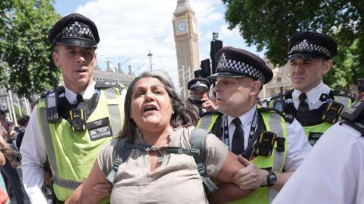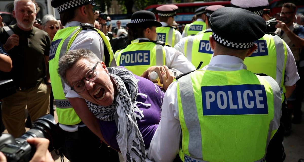 وأوضحت الشرطة أن قواتها نفذت الاعتقالات بعد أن تجمعت حشود كانت تلوح بلافتات تعبر عن دعمها لمجموعة «فلسطين أكشن» في ساحة البرلمان.