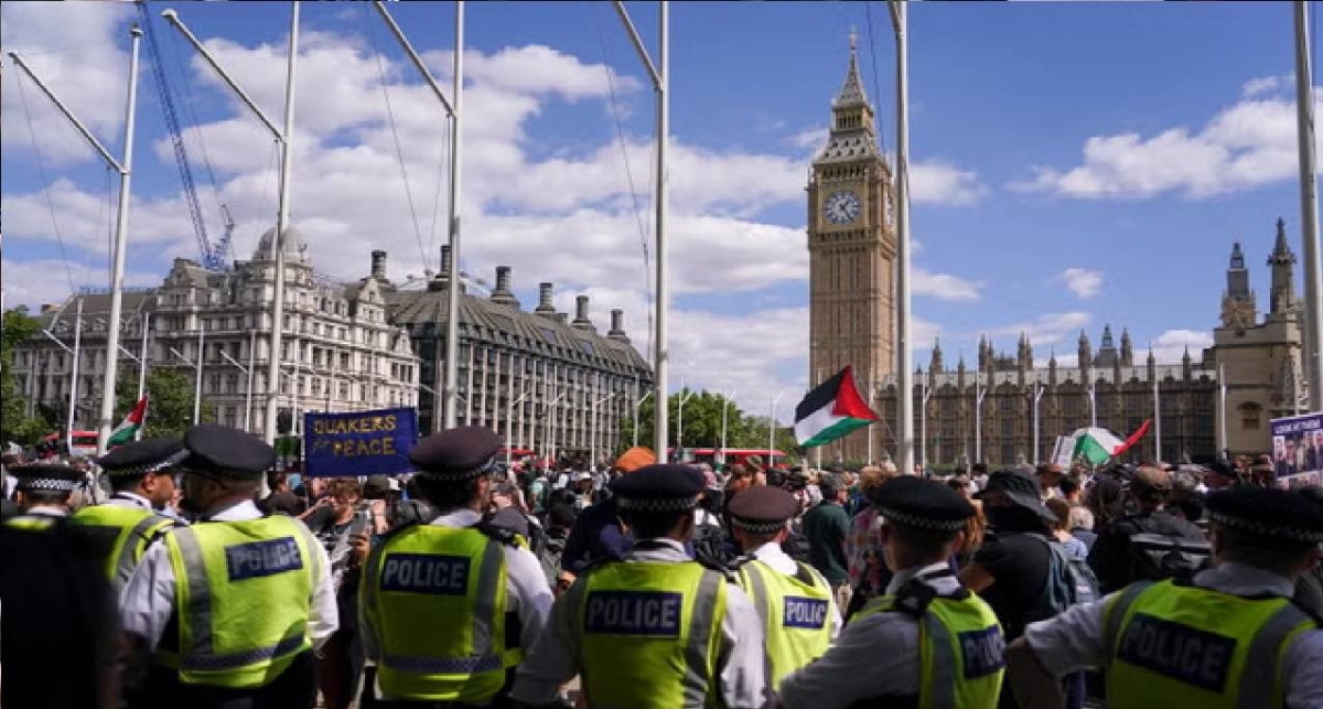 The police clarified that their forces carried out the arrests after crowds gathered waving signs expressing their support for the "Palestine Action" group in Parliament Square.