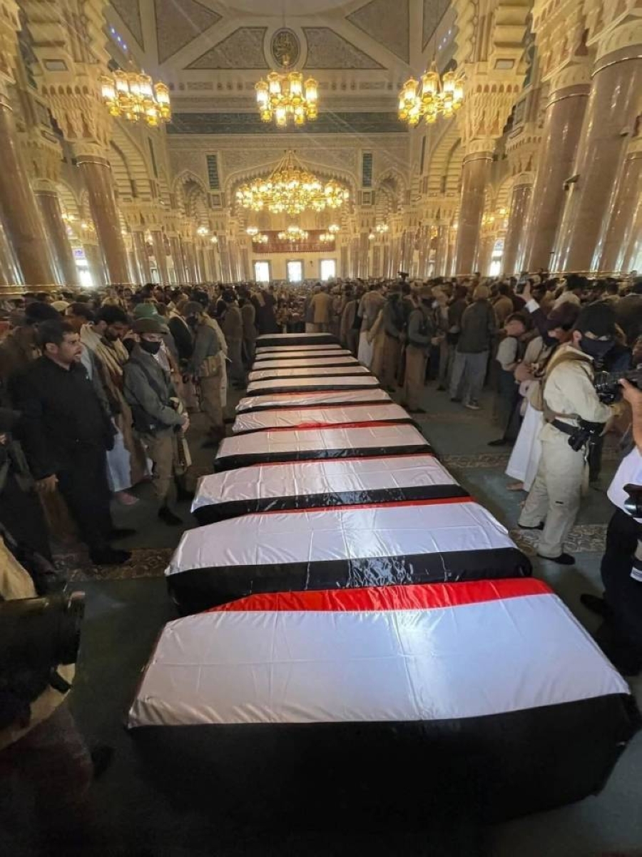 The Houthis today (Monday) buried 12 bodies of victims of the Israeli bombing in Sana'a, including the head of the coup government, Ahmed Ghaleb Al-Rahawi, and 9 ministers and other officials.